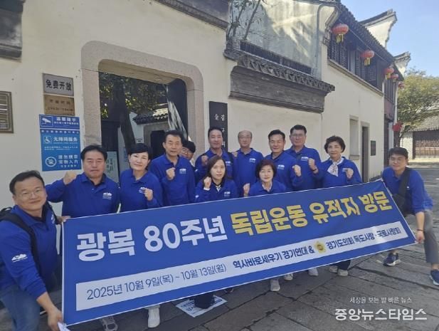 (중앙뉴스타임스 = 방재영 기자) 광복 80주년을 맞아 중국 내 항일 독립운동 유적지를 탐방한 경기도의회 ‘독도사랑ㆍ국토사랑회’와 ‘역사바로세우기 경기연대’가 5일간의 일정을 마치며, 선열들의 숭고한 정신을 이어받아 경기도에서 올바른 역사관을 정립하고, 영토 주권 수호를 위한 활동을 더욱 강력히 펼쳐나가겠다고 다짐했다.