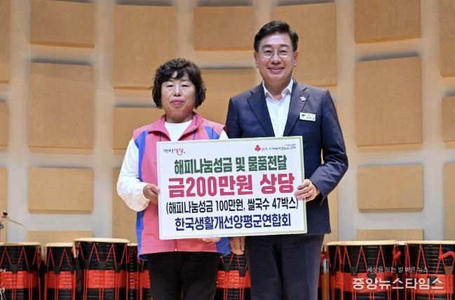 (중앙뉴스타임스 = 방재영 기자) 한국생활개선양평군연합회는 지난 9월 30일부터 10월 1일까지 강릉 한국여성수련원에서 열린 ‘2025년 생활개선양평군연합회 한마음대회’에서 쌀국수 47박스와 현금 100만 원, 총 200만 원 상당의 해피나눔성금을 기탁했다고 밝혔다.