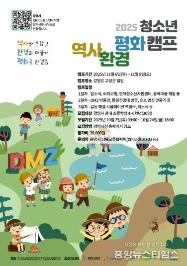 이번 캠프는 오는 11월 6일부터 8일까지 2박 3일 강원도 고성군 일원에서 진행하며, 청소년들이 분단의 현장을 직접 보고 느끼며 평화의 의미를 배우는 현장 중심 체험형 프로그램으로 운영한다.
