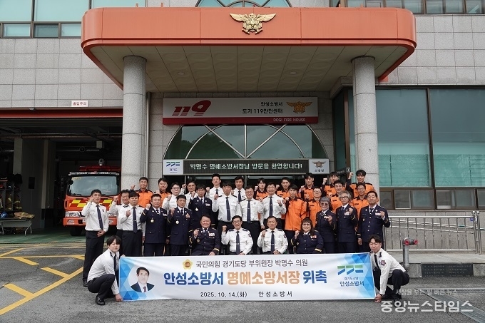 (중앙뉴스타임스 = 방재영 기자) 경기도의회 박명수 의원이 14일 안성소방서 ‘1일 명예소방서장’으로 위촉되어, 안성 관내 소방 현황 및 주요현안에 대한 업무보고를 받는 등 현장 소방활동과 대응 체계 전반을 직접 점검하는 시간을 가졌다.