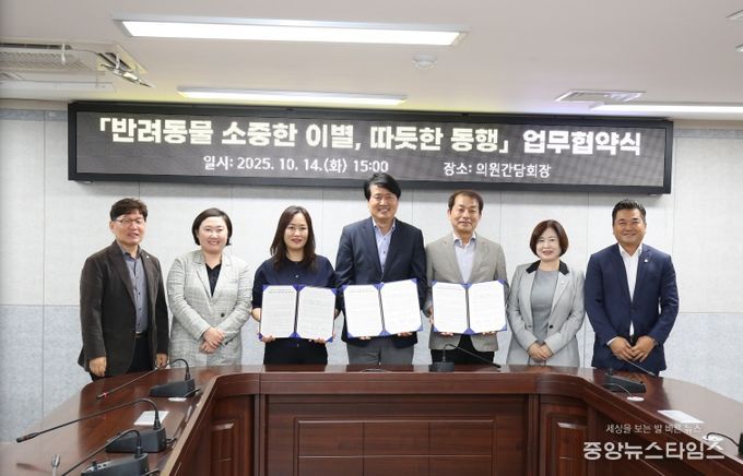 (중앙뉴스타임스 = 방재영 기자) 인천 서구는 14일 관내 동물장묘업체와 함께 ‘반려동물 소중한 이별, 따뜻한 동행’을 주제로 반려동물 장례문화 지원 업무협약을 체결했다. 이번 협약은 서구의회 의원연구단체인 서구반려동물정책연구회가 공동발의해 전국 최초로 제정한 ‘인천광역시 서구 반려동물 장례문화 지원 조례’를 근거로 진행됐다는 점에서 의미가 크다.
