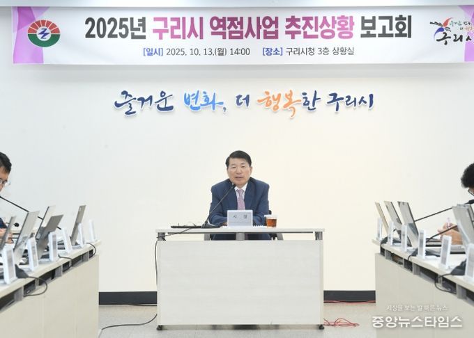 (중앙뉴스타임스 = 방재영 기자) 구리시는 지난 13일 시청 3층 상황실에서 시정 주요 역점사업의 추진 현황을 점검하기 위한 '역점사업 추진 상황 보고회'를 개최했다.