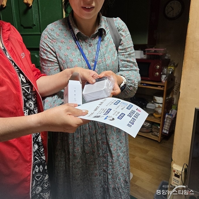 송림2동은 관내 난방·환기·고령 및 거동 불편 등 안전 취약 가구 15가구를 선정하여 경보기 1대씩 보급했다. 동 보건복지팀 직원은 직접 가정을 방문하여 설치 지원 및 작동 점검을 확인했다.