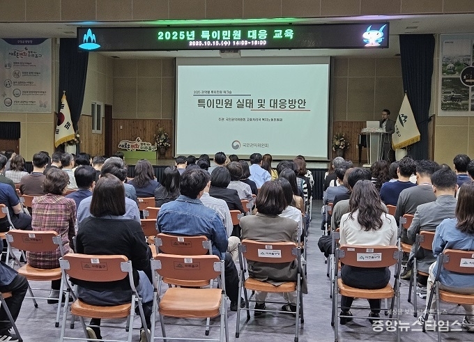 한편, 구는 특이 민원 대응 체계 강화를 위해 특이 민원 비상대응반 편성 및 모의훈련 실시, 전담 부서 지정, 휴대용 보호장비·비상벨·녹음 전화 등 장비 운용, 특이 민원 대응 자체 지침 제작·전파, 힐링 프로그램 운영 등 다각적인 노력을 이어가고 있다.