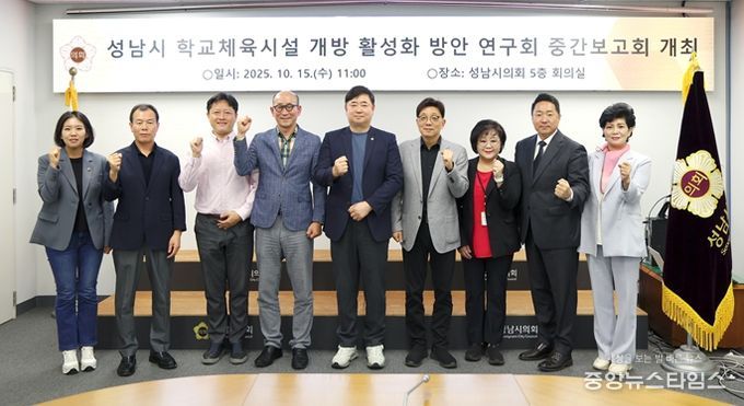 (중앙뉴스타임스 = 방재영 기자) 성남시의회 국민의힘 김종환 의원(판교·백현·운중, 예산결산특별위원장)이 회장을 맡은 2025년도 의원연구단체 '성남시 학교체육시설 개방 활성화 연구회'의 연구용역 중간보고회가 15일 시의회에서 개최됐다.