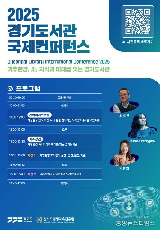 (중앙뉴스타임스 = 이광운 기자) 경기도와 경기도평생교육진흥원은 오는 23일 수원컨벤션센터 컨벤션홀3에서 ‘기후환경, AI, 지식과 미래를 잇는 도서관’을 주제로 ‘2025 경기도서관 국제콘퍼런스’를 개최한다.