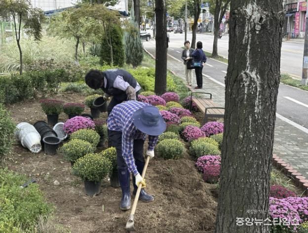 (중앙뉴스타임스 = 방재영 기자) 시흥시 정왕본동 행정복지센터는 지난 14일 지역주민과 방문객에게 쾌적한 도시환경을 제공하기 위해 역전로 화단에 가을꽃을 식재하고 주변 환경 정화 활동을 진행했다.