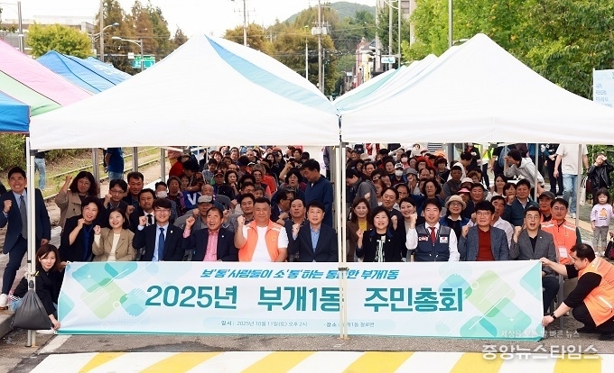(중앙뉴스타임스 = 방재영 기자) 인천 부평구 부개1동 주민자치회는 지난 11일 부개동 철로변 어반루체아파트 인근에서 ‘2025년 부개1동 주민총회’를 개최했다.