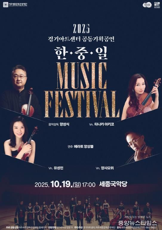 (중앙뉴스타임스 = 이광운 기자) 여주세종문화관광재단이 오는 19일 경기아트센터와 공동기획으로 ‘한·중·일 뮤직 페스티벌’을 세종국악당에서 선보인다.