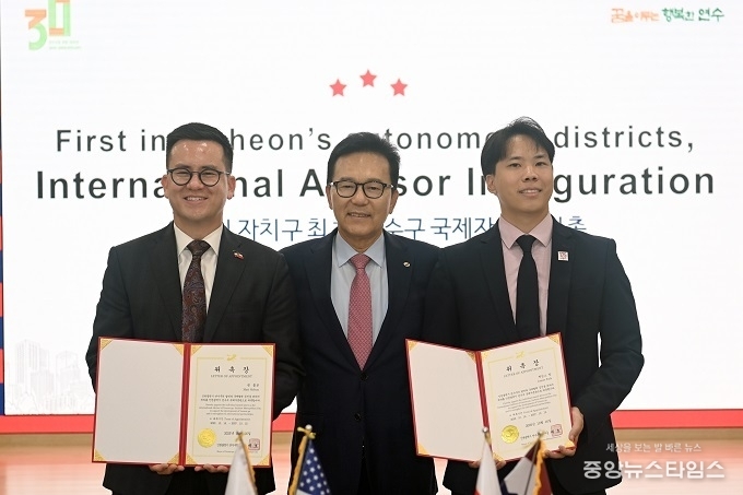 (중앙뉴스타임스 = 방재영 기자) 인천 연수구는 지난 16일 연수구 국제자문관으로 맷 홀튼(코튼우드 하이츠시의원)과 제임스 박(유타대학교 아시아캠퍼스 대외협력처 실장)을 위촉했다.