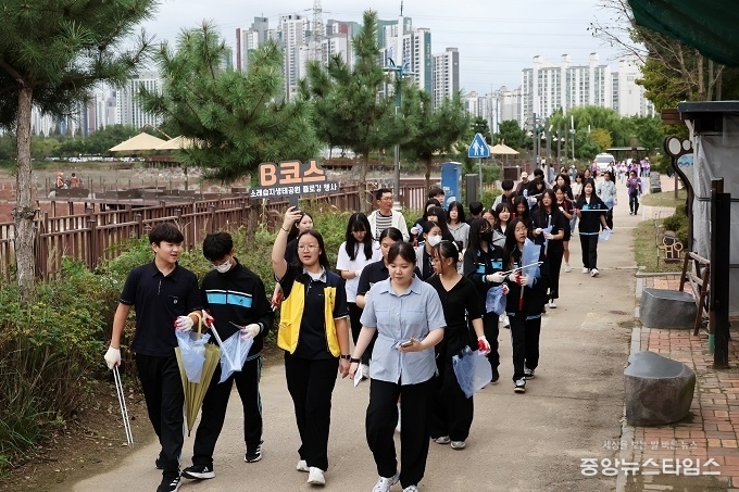 (중앙뉴스타임스 = 방재영 기자) 인천 남동구 논현1동 주민자치회(회장 이미순)는 주민자치회 시범사업의 일환으로, 논현중학교 학생들과 함께 소래습지생태공원에서 플로깅 행사를 진행했다고 17일 밝혔다.