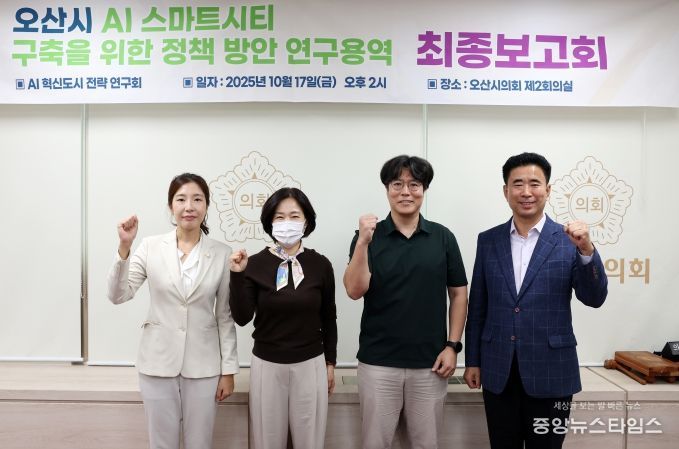 (중앙뉴스타임스 = 방재영 기자) 오산시의회 의원연구단체인 ‘AI혁신도시 전략 연구회’는 17일 의회 제2회의실에서 오산형 AI 스마트시티 구축을 위한 정책 방안 연구 최종보고회를 개최했다.