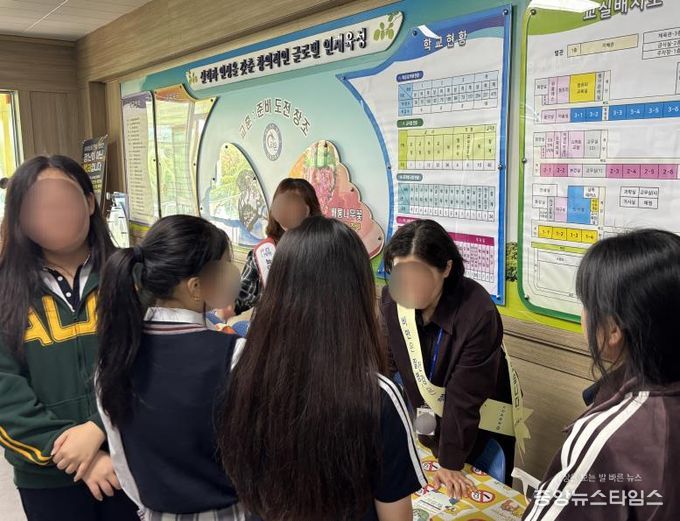 (중앙뉴스타임스 = 방재영 기자) 평택시 송탄보건소는 지난 16일 라온중학교에서 청소년의 흡연 예방과 건강한 체중 관리를 위한 ‘청소년 흡연예방 및 비만예방 캠페인’을 실시했다고 밝혔다. 이번 행사는 송탄보건소 금연 상담사와 영양사 등이 참여해 점심시간을 활용한 체험 중심 홍보로 학생들의 큰 호응을 얻었다.