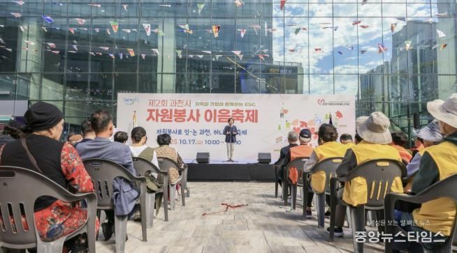 (중앙뉴스타임스 = 이광운 기자) 과천시는 지난 17일, 과천 지식정보타운 스마트케이 썬큰광장에서 과천시종합자원봉사센터 주관으로 ‘제2회 과천시 자원봉사 이음축제’를 성황리에 개최했다고 밝혔다.