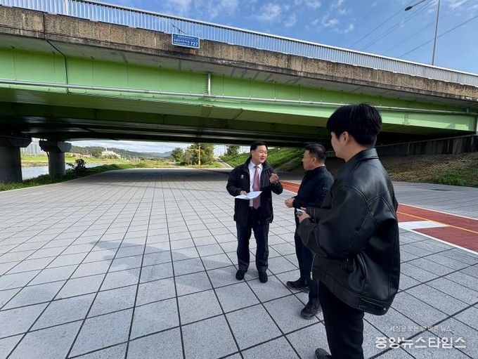 (중앙뉴스타임스 = 방재영 기자) 경기도의회 고준호 의원(국민의힘, 파주)은 20일 파주시 조리읍 봉일천리 일대에서 완료된 ‘봉일천 친수하천 공간조성사업’ 현장을 방문해 마무리 사업 진행 현황을 점검하고, 관계 공무원들과 조명시설 보강 및 추가 예산 확보 방안을 논의했다.