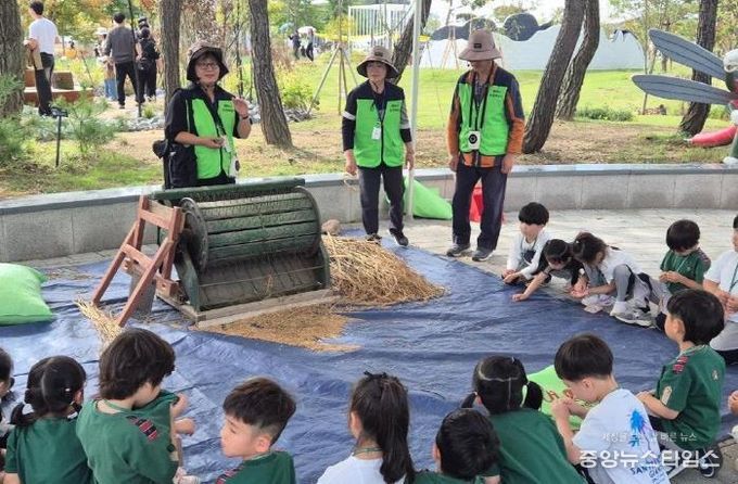 (중앙뉴스타임스 = 방재영 기자) 평택시는 지난 16일부터 19일까지 평택시 농업생태원에서 열린 제13회 경기정원문화박람회 기간에 농업해설 및 농촌체험 프로그램의 하나로 ‘오성뜰 벼 탈곡체험’을 운영했다.