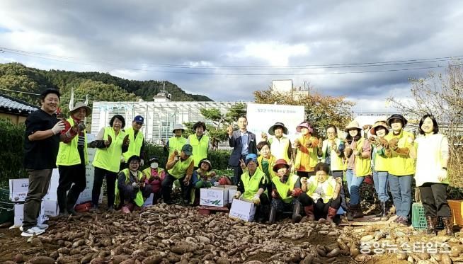 (중앙뉴스타임스 = 방재영 기자) 양평군 청운면 지역사회보장협의체는 지난 20일 청운면 용두리 소재 고구마 텃밭에서 협의체 위원 20여 명이 참여한 가운데 고구마를 수확하며 이웃 사랑을 실천했다.