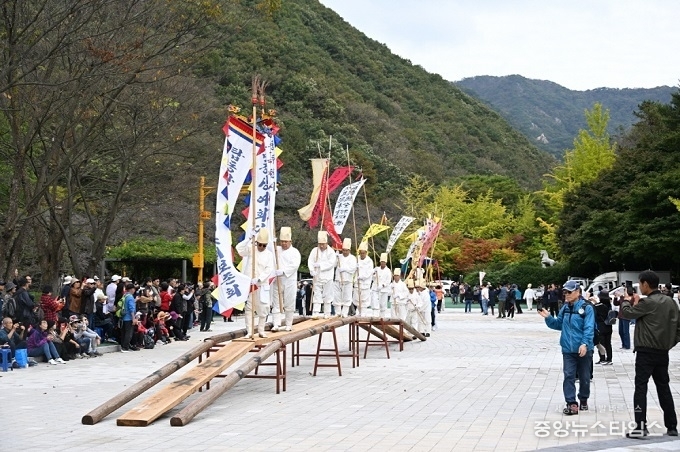특히 행사 시작과 함께 지금은 보기 힘든 전통 상여 행렬이 재현되자, 많은 등산객들이 사진과 영상을 촬영하며 흥미롭게 지켜봤다. 보존회원들은 준비한 부침개와 막걸리를 관람객에게 나누며 따뜻한 정을 나누는 모습도 보였다.