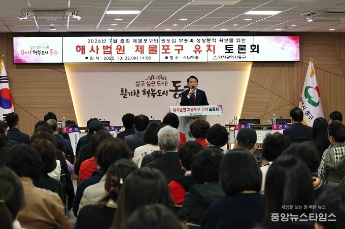 (중앙뉴스타임스 = 방재영 기자) 인천 동구는 22일 구청 소나무홀에서 ‘해사법원 제물포구 유치’를 주제로 한 토론회를 성황리에 개최했다.