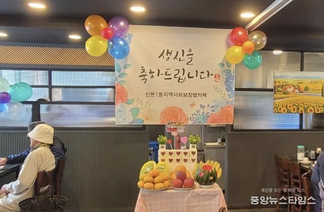 (중앙뉴스타임스 = 방재영 기자) 군포시 산본1동 지역사회보장협의체에서 지난 10월 21일, 하반기에 생신을 맞는 취약계층 홀몸 어르신들을 모시고 뜻깊은 축하의 자리를 마련했다.