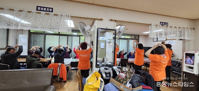 총 40분간 진행된 이번‘건강 체조’는 단순한 체조를 넘어, 음악에 맞춰 춤을 추고 노래를 함께 부르는 등 어르신들의 흥을 북돋는 방식으로 꾸며졌다.