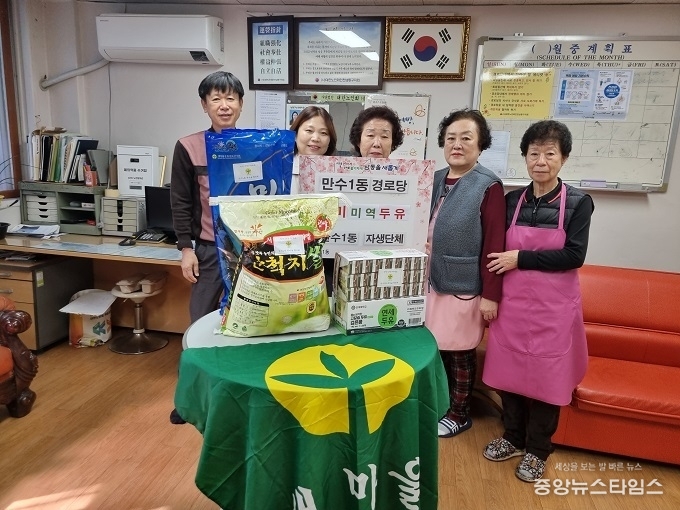 (중앙뉴스타임스 = 방재영 기자) 인천 남동구 만수1동 새마을협의회는 최근 만수1동 소재 구립경로당 2곳을 방문해 어르신들께 후원 물품을 전달했다고 23일 밝혔다.
