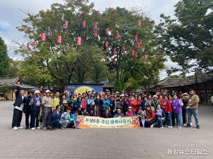 (중앙뉴스타임스 = 방재영 기자) 인천 부평구 부평6동 주민자치회는 지난 22일 경기도 용인에 위치한 와우정사와 한국민속촌에서 지역 어르신 70명과 함께 ‘주민 행복 나들이’를 진행했다.