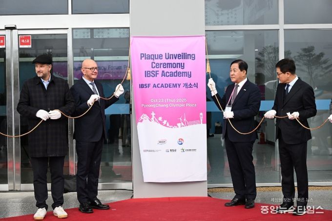 (중앙뉴스타임스 = 방재영 기자) 2025 세계올림픽도시연맹 총회가 한창 진행 중인 평창올림픽플라자에서는 오늘(10월 23일) 오후, 이보 페리아니(Ivo Ferriani) IBSF(국제봅슬레이스켈레톤연맹) 회장과 전찬민 IBSF 부회장 겸 KBSF(대한봅슬레이스켈레톤연맹) 회장, 최성희 문체부 체육협력관, 심재국 평창군수 그리고 원윤종 등 국내외 썰매 종목 관계자와 선수들이 참석한 가운데 'IBSF 아카데미 평창사무소 개소식'이 열렸다.
