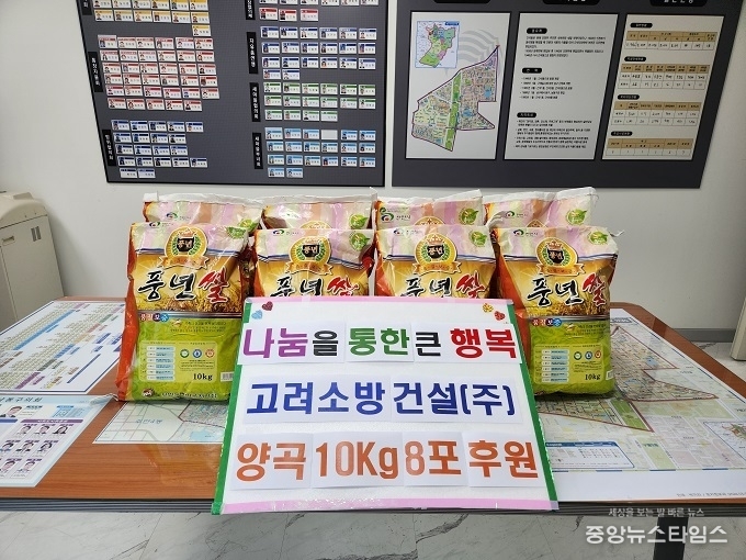 (중앙뉴스타임스 = 방재영 기자) 인천 남동구 간석1동 행정복지센터는 최근 고려소방건설(주) 박은영 이사로부터 양곡 10kg 8포를 기탁받았다고 24일 밝혔다.