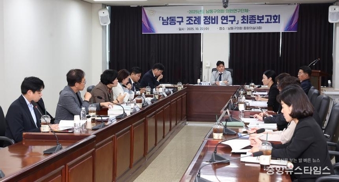 (중앙뉴스타임스 = 방재영 기자) 인천 남동구의회 의원연구단체 ‘남동구 조례정비 연구회’가 지난 22일 남동구의회 중회의실에서 ‘남동구 조례정비 연구용역’ 최종보고회를 개최했다.