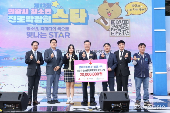 (중앙뉴스타임스 = 방재영 기자) (재)의왕시청소년재단 산하 의왕시진로지원센터는 지난 24일 부곡체육공원에서 열린‘제12회 의왕시청소년진로박람회’현장에서 ‘의왕롯데케미칼 2천만원 지정기탁금 전달식’을 진행했다.