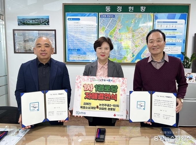 (중앙뉴스타임스 = 방재영 기자) 인천 남동구 논현2동 행정복지센터는 김혜진흑염소삼계탕(대표 김혜진)과 논현주공2-1단지경로당(회장 황우진)이 지역사회 나눔과 노인복지 증진을 위한 1사 1경로당 자매결연식을 개최했다고 29일 밝혔다.