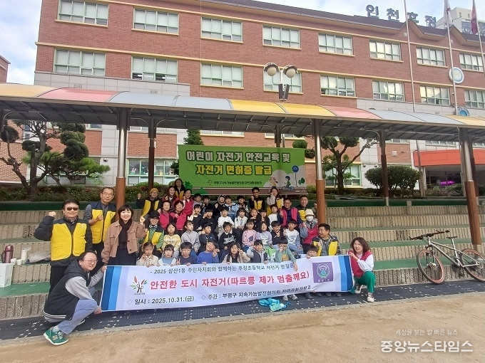 (중앙뉴스타임스 = 방재영 기자) 인천 부평구 삼산1동 주민자치회는 지난 31일 후정초등학교에서 학생 70여 명이 참여한 가운데 ‘안전한 도시 자전거 교육사업’을 진행했다.
