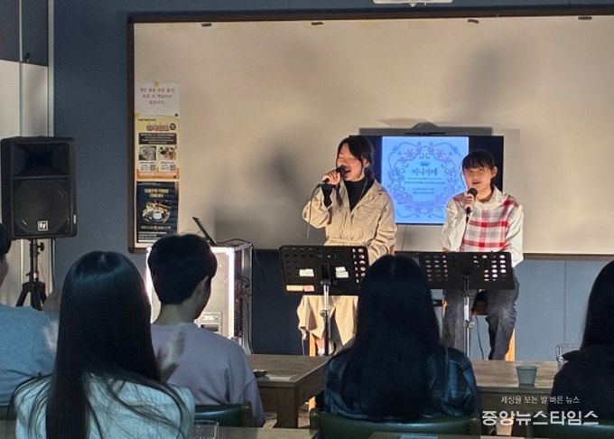 이번 미니카페는 무대예술 동아리와 사회참여 동아리의 연합 활동으로 다양한 노래 구성과 함께 직접 준비한 음료와 버터쿠키를 제공하며 청소년과 지역주민이 함께 어우러지는 소소한 공연의 장으로 마련됐다.