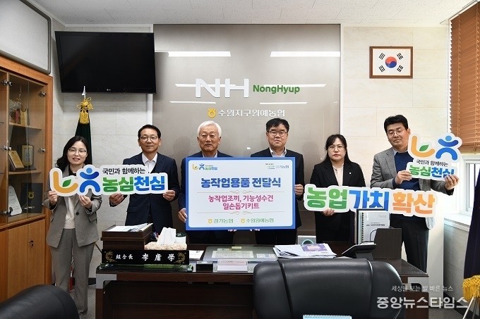 이번 전달식에는 엄범식 농협중앙회 경기본부장을 비롯해 수원원예농협 이용학 조합장과 임직원 등이 참석했으며, 농업인들의 안전하고 효율적인 작업을 돕기 위한 다양한 농작업 용품이 전달됐다.