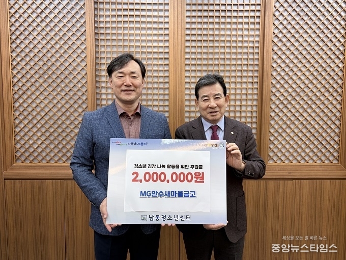 (중앙뉴스타임스 = 방재영 기자) 인천 남동구 남동청소년센터는 MG만수새마을금고(이사장 이문교)로부터 ‘청소년 김장 나눔 봉사활동’ 후원금 200만 원을 전달받았다고 7일 밝혔다.