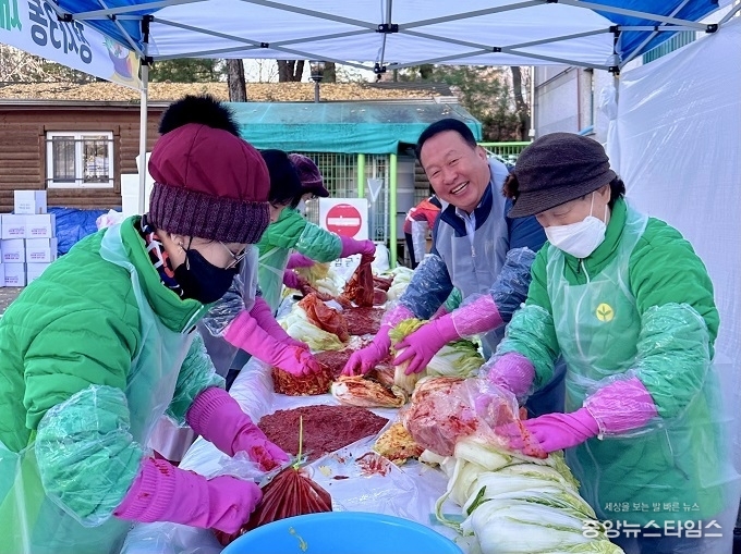 (중앙뉴스타임스 = 방재영 기자) 경기도의회 안계일 의원(국민의힘, 성남7)은 19일 성남시 정자3동 행정복지센터에서 열린 ‘정자3동 새마을부녀회 사랑의 김장 나눔 행사’를 찾아 새마을부녀회 회원들과 함께 김장 담그기 작업을 손수 도우며 따뜻한 나눔 활동을 격려했다.