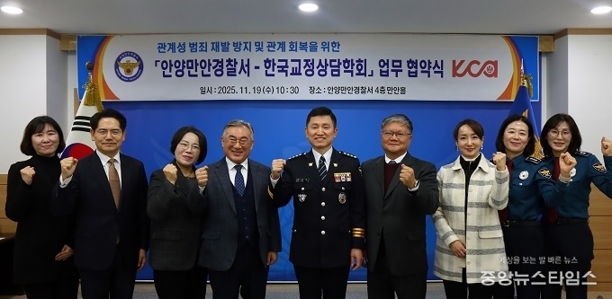 (중앙뉴스타임스 = 방재영 기자) (사)한국상담학회 교정상담학회(회장: 전요섭, 성결대학교)는 19일 오전 안양만안경찰서를 방문해 가정폭력 등 관계성 범죄의 재발 방지를 위한 업무협약(MOU)을 체결했다.