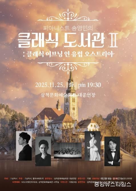 (중앙뉴스타임스 = 방재영 기자) 삼척시는 세계적인 오스트리아 작곡가들의 명곡을 감상할 수 있는 기획공연 ‘클래식 도서관 시즌2 – 클래식 이브닝 인 유럽 오스트리아’를 오는 11월 25일 오후 7시 30분, 삼척문화예술회관 대공연장에서 개최한다.