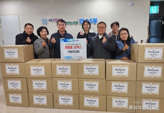 (중앙뉴스타임스 = 방재영 기자) 인천 남동구 만수5동 행정복지센터는 리얼러브교회로부터 생필품 20상자를 기탁받았다고 20일 밝혔다.