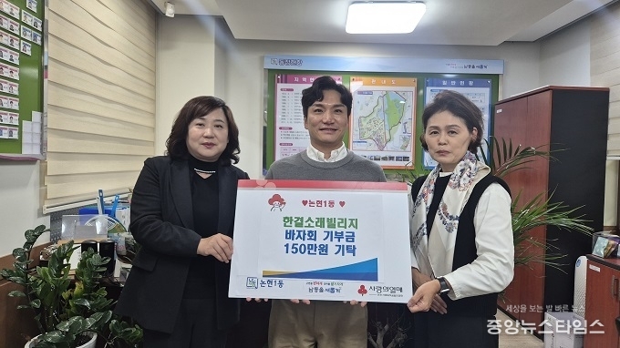(중앙뉴스타임스 = 방재영 기자) 인천 남동구 논현1동 행정복지센터는 한결소래빌리지(원장 권민영)로부터 ‘2025년 소래빌리지 가을 바자회’ 행사를 통해 마련된 수익금 150만 원을 기탁받았다고 21일 밝혔다.