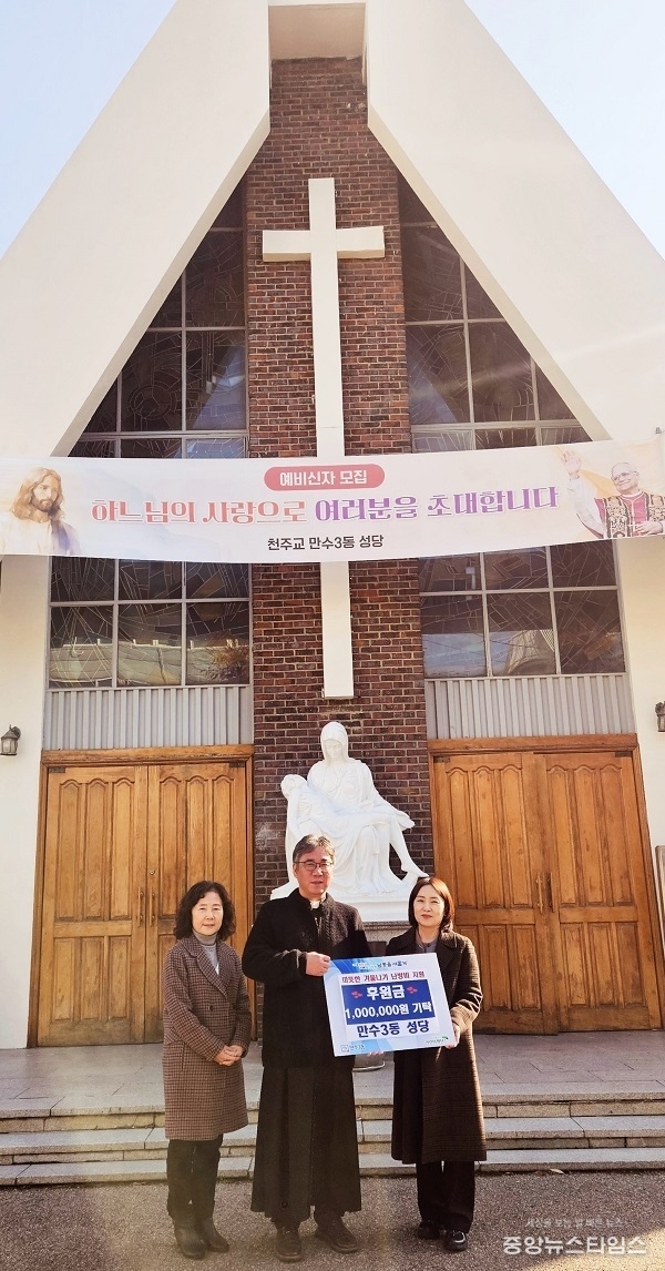 (중앙뉴스타임스 = 방재영 기자) 인천 남동구 만수3동 행정복지센터는 만수3동 천주교회(신부 윤승일)로부터 따뜻한 겨울나기 후원금 100만 원을 전달받았다고 21일 밝혔다.