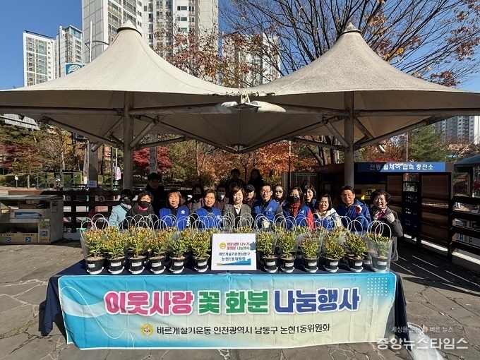 (중앙뉴스타임스 = 방재영 기자) 인천 남동구 논현1동 바르게살기운동위원회는 경로당을 이용하는 취약계층 노인가구에 이웃사랑 꽃 화분 나눔 행사를 개최했다고 24일 전했다.
