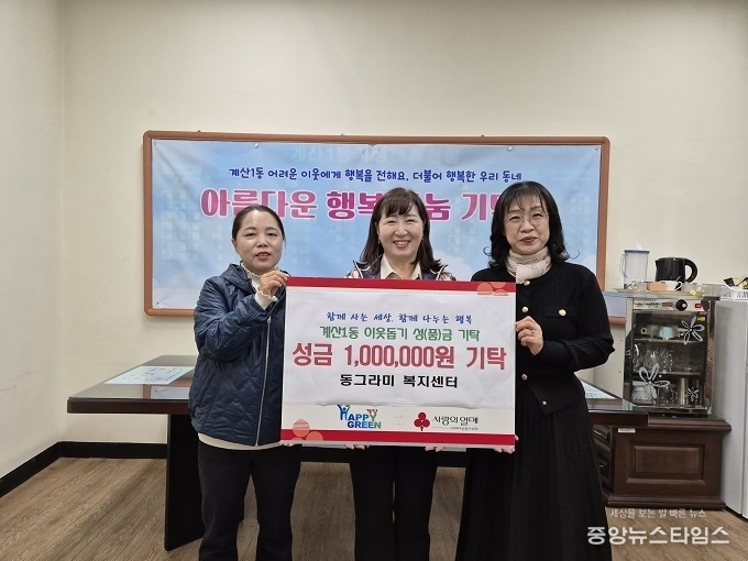 이번 성금은 계산1동의 저소득 주민들을 위한 복지사업에 쓰일 예정이며, 기탁을 계기로 지역사회 내 나눔문화 확산에도 도움이 될 것으로 기대된다.