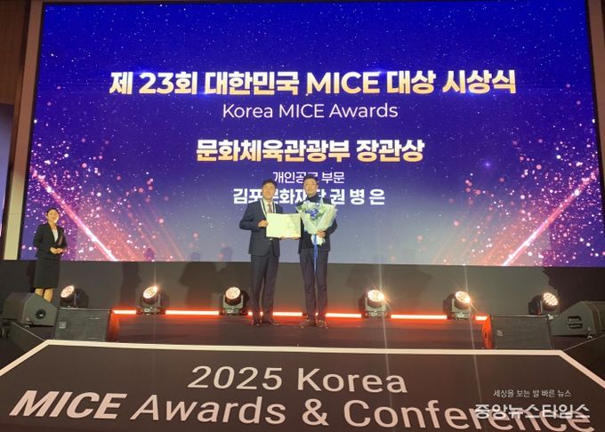 김포문화재단은 ▲행정안전부장관 표창(기관) ▲민방위 업무발전 유공 경기도지사 표창(개인) ▲제23회 대한민국 MICE 대상 문화체육관광부 장관상(개인)을 수상하며 '2025년 3관왕'을 달성했다.