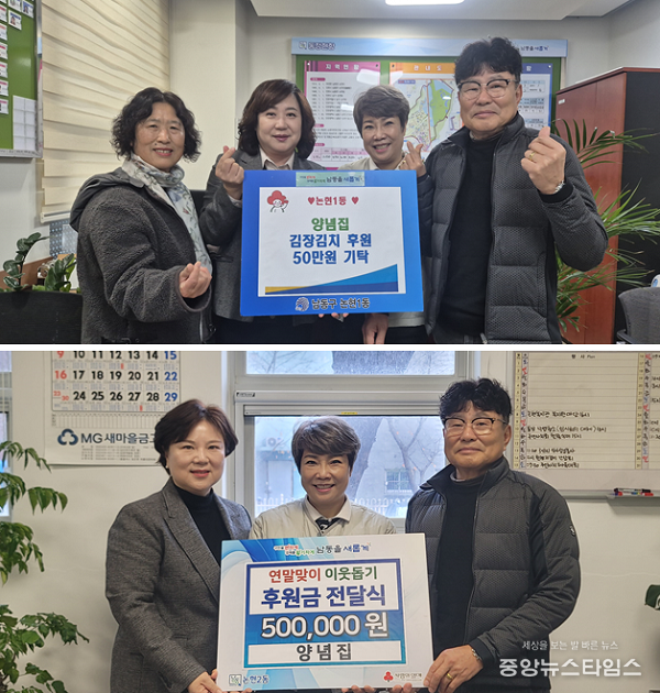 유금미 논현1동장은 “매년 지역 주민을 위해 꾸준히 나눔을 실천해 주셔서 감사하다”라며 “이번 성금은 다가오는 사랑의 김장 나눔 행사를 통해 취약계층 김장 김치 지원으로 사용하겠다”라고 말했다.