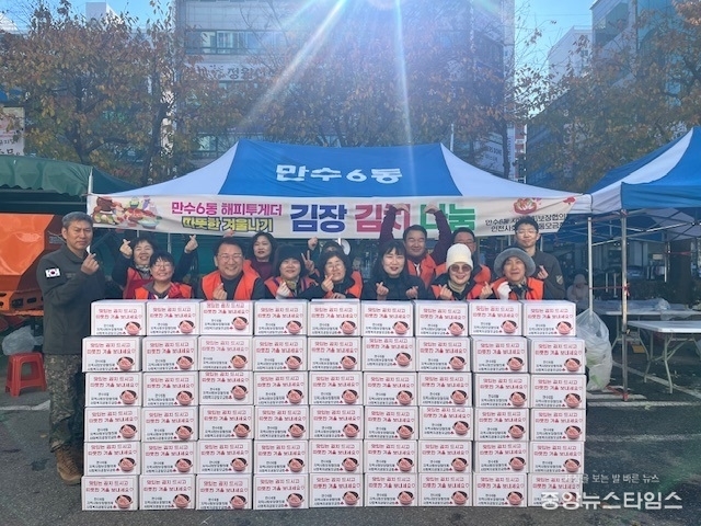 (중앙뉴스타임스 = 방재영 기자) 인천 남동구 만수6동 행정복지센터는 취약계층의 따뜻한 겨울나기를 위해 김장김치 나눔 행사를 했다고 26일 밝혔다.