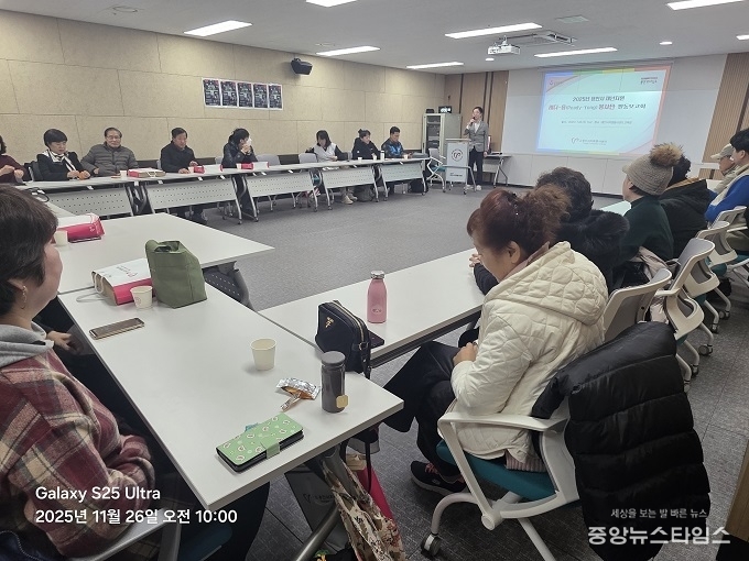 (중앙뉴스타임스 = 방재영 기자) (재)용인시자원봉사센터는 26일 용인시 재난지원 레디-용(Ready-Yong) 봉사단 50명이 참석한 가운데 용인시자원봉사센터 교육장에서 2025년 활동 보고회를 진행했다.