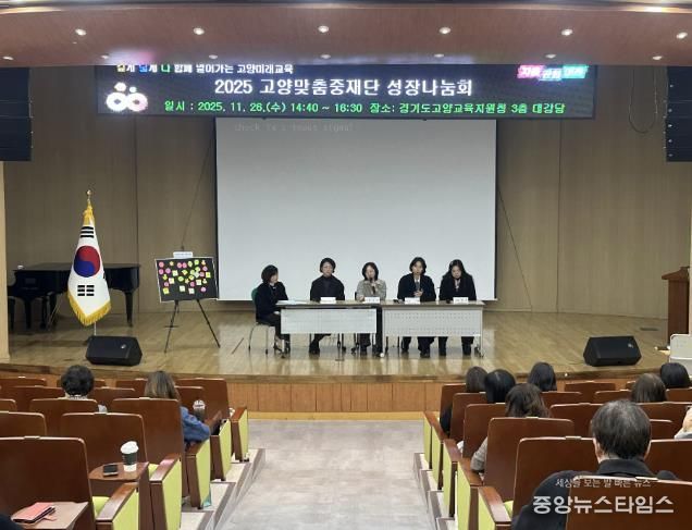 (중앙뉴스타임스 = 이광운 기자) 고양교육지원청이 11월 26일 개최한‘2025 고양맞춤중재단 성장나눔회’가 한 해의 성장을 서로 나누고, 내년의 새로운 변화를 기대하게 만드는 산뜻한 자리로 마무리됐다. 이번 행사에는 고양맞춤중재단, 마음공유 준비학교, 고양 관내 교원 등이 참여해 올해 운영된 관계성장프로그램을 되돌아보고, 2026년의 더 단단한 운영 방향을 함께 그렸다. 참석자들 사이에는 “올해 이런 일도 있었어?”라는 반응이 나올 만큼 서로의 경험을 나누는 대목마다 밝은 에너지와 진솔한 이야기들이 이어졌다.