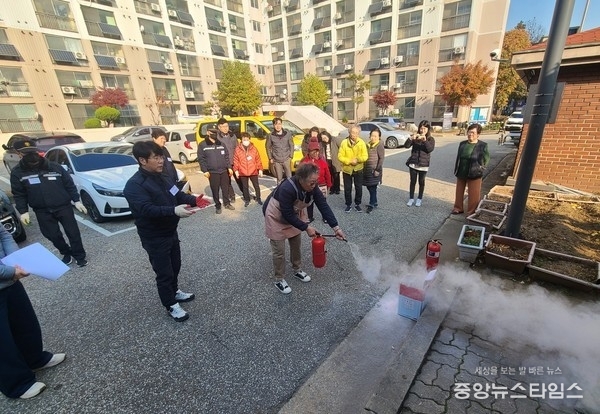 청학전세임대아파트 관리사무소, 경로당과 합동으로 진행한 이번 모의 훈련은 특히 ‘어르신 화재대피 및 소화훈련’을 통해 고령층이 실제 상황에서 즉각 활용할 수 있는 실질적 교육 중심으로 운영해 큰 호응을 얻었다.